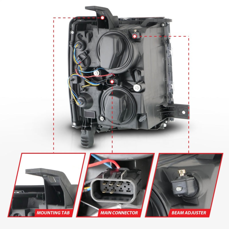 ANZO 14-15 Chevrolet Silverado 1500 Projector Headlights w/ Halo Black Housing w/ Chrome Trim