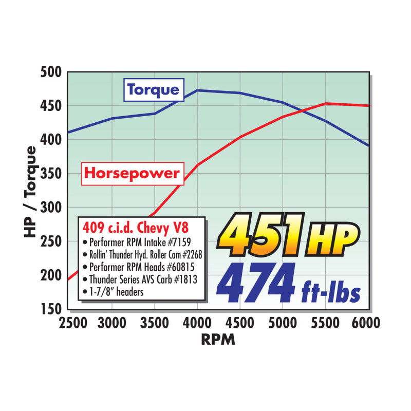 Designed for 1955-86 262-400 c.i.d. Chevy V8s for maximum power and a broad torque curve for high-performance street/marine. Provides power like a single-plane and throttle response like a dual-plane. Has provisions to add oil fill tube.